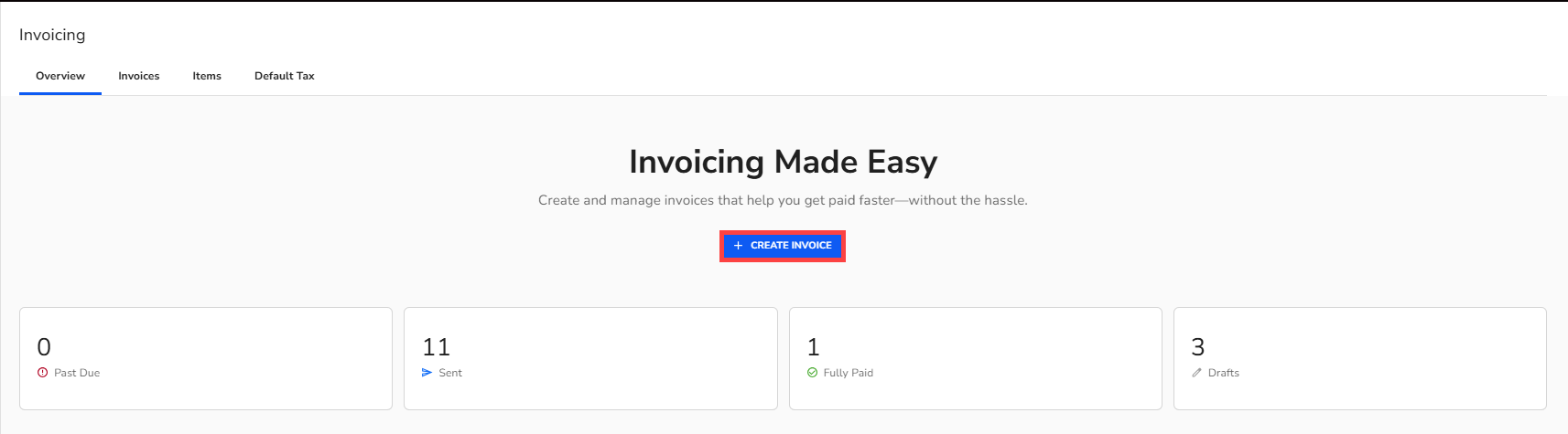 - Select + Create Invoice.