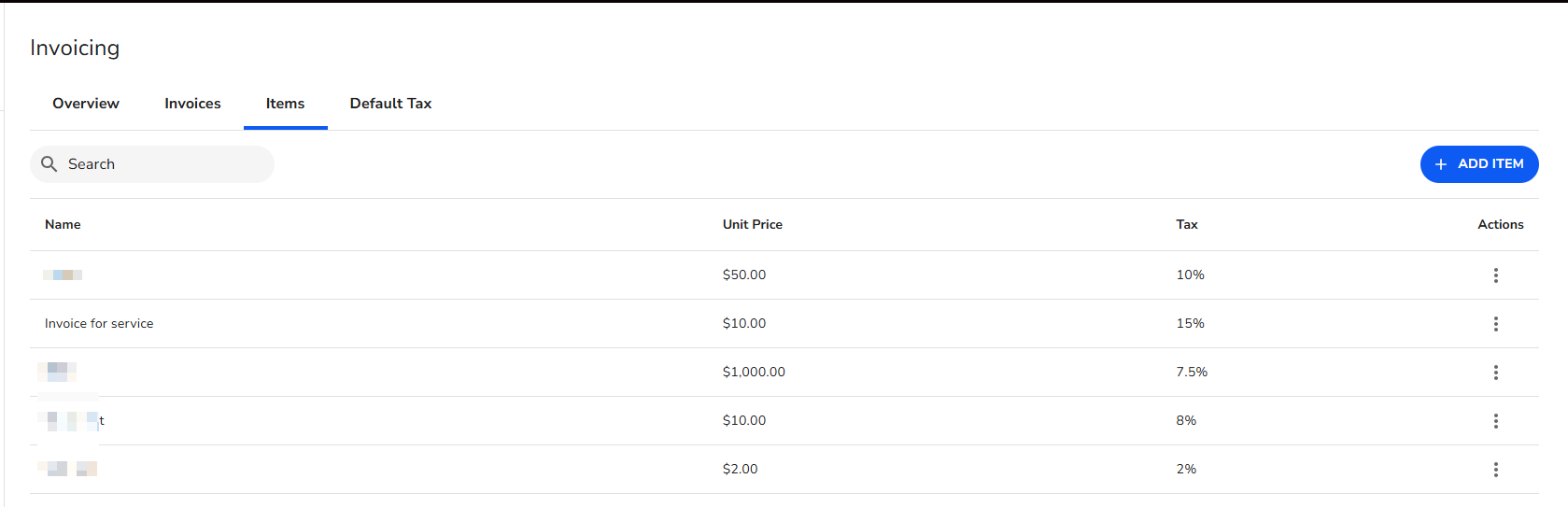 Description: The Items page allows you to create, view, and manage the products or services used in your invoices.