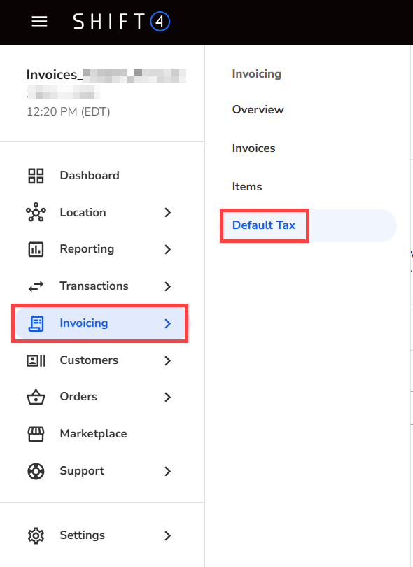 - Log in to Lighthouse Business Manager (LBM) and select Invoicing> Default Tax.