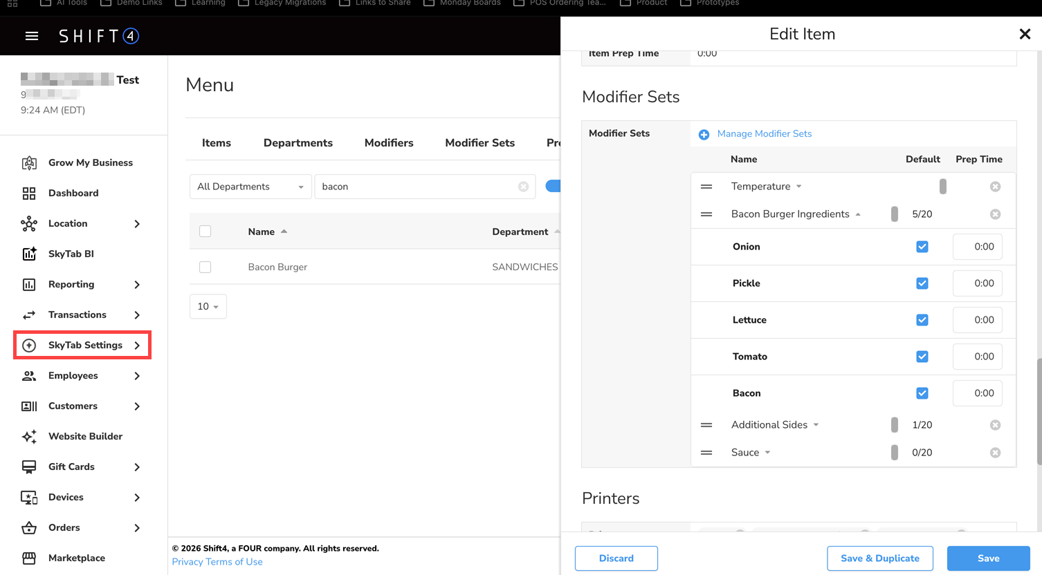 Default Modifiers allow specific modifiers (such as ingredients or add-ons) to be automatically selected when an item is added to an order. These defaults represent the standard build of a menu item while still allowing staff to quickly remove or adjust them.
