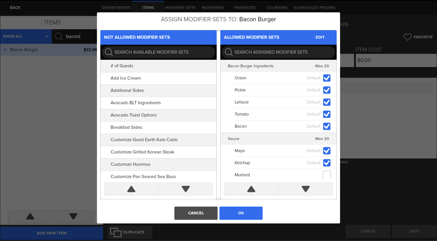 Default Modifiers help streamline operations and improve accuracy across your menu: