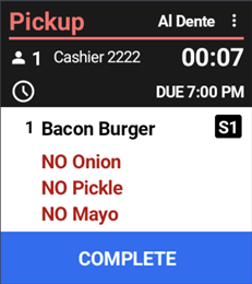 Example KDS Ticket with: