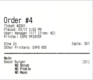 Example Kitchen Ticket with: