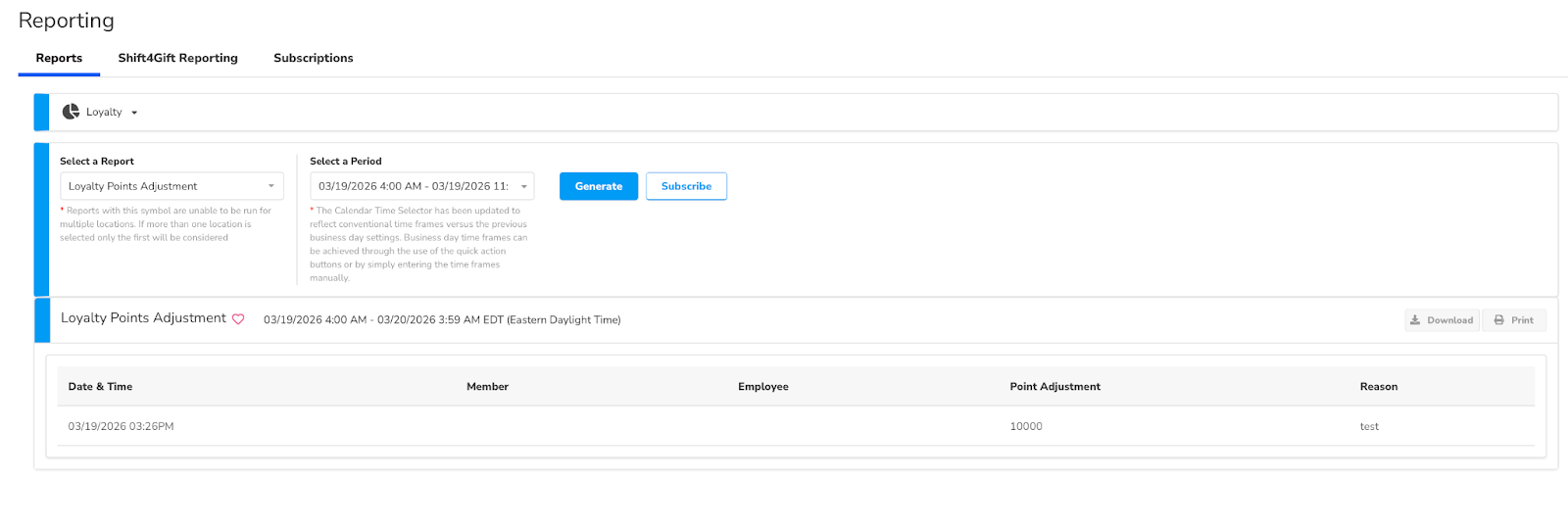 Loyalty Point Adjustment