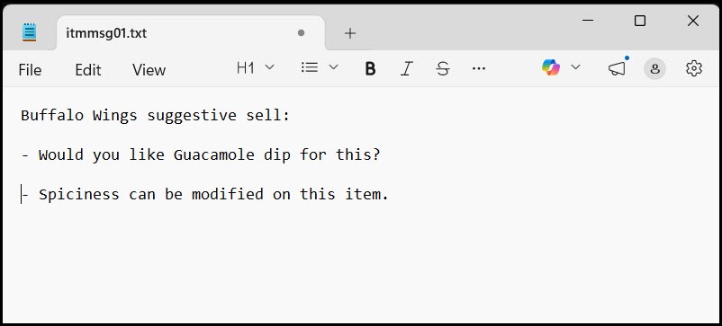 - Create a text file named ITMMSGXX.TXT in the \sc directory of the POS driver, where XX is a unique two-digit number for the pop-up message (for example, ITMMSG01.TXT).