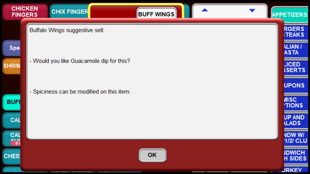 - From a front-of-the-house terminal, select a suggestive sell item to display a pop-up message. Select OK to continue with the order.
