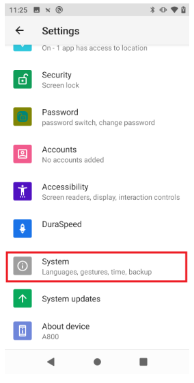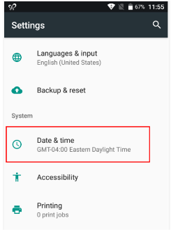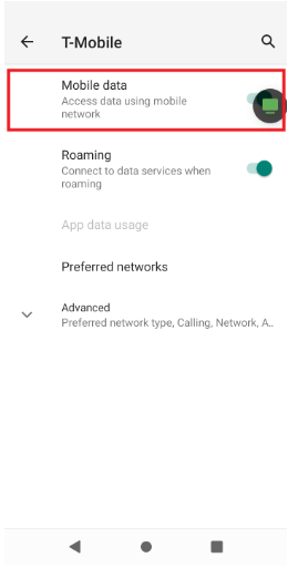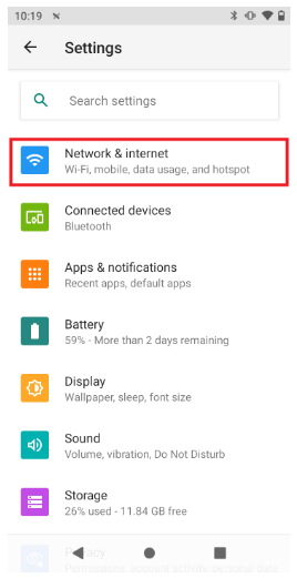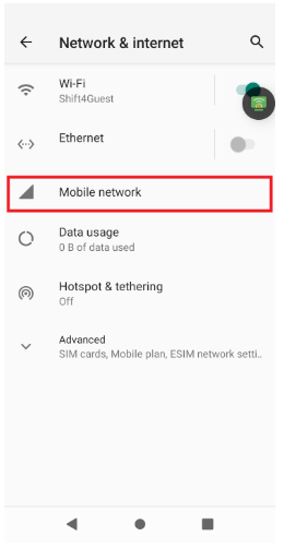 Note: You may need to reboot the terminal to get to this screen. - Select Mobile Network under "Network & Internet."