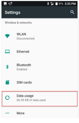 Note: You may need to reboot the terminal to get to this screen. - Select Data Usage under "Wireless & networks." Toggle the Cellular Data option to the right to activate.