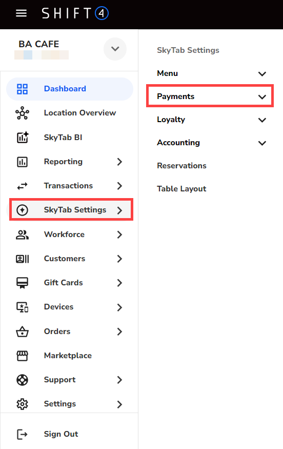 - Select SkyTab Settings > Payments.