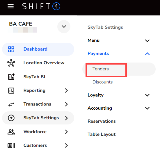 - Navigate to SkyTab Settings > Payments > Tenders.