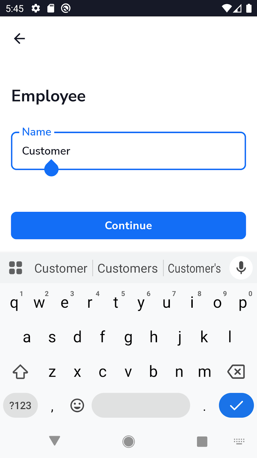 - Enter the employee name that will be displayed within the app and used for reporting. When done, press the back arrow in the top-left corner to return to the home screen.