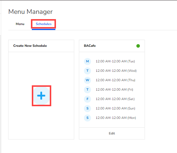 Description: SkyTab Menu Manager requires an active schedule for the store to function properly. Stores can have as many schedules as they wish, each with different items available, but must have at least one active schedule to be visible online.