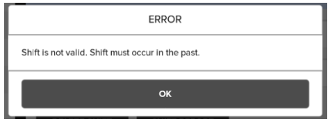 - Future date shift validation prevents manually adding a future date to shift start time or end time on a new shift or existing shift. This prevents management from changing an employee's time clock to a time that is in the future or on a different date, which could cause errors in reporting.