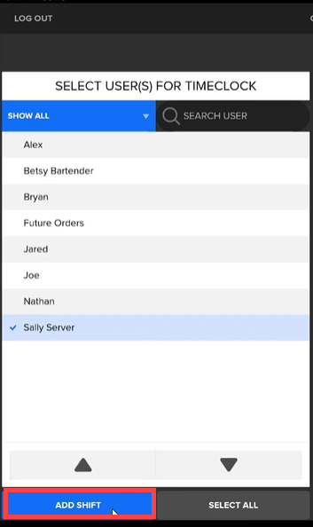 To add a shift, select a user from the left side and then select Add Shift on the bottom left side of the screen.